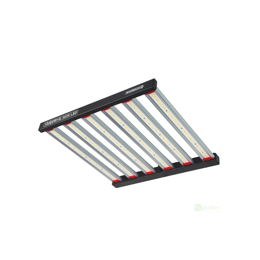 - Maxibright VARIDRIVE 360W LED s integrovaným driverem - Nenechte se zmást spotřebou pouhých 360 W. Toto svítidlo generuje masivní fotosyntetický fotonový tok (PPF) 1040 µmol/s s vynikající účinností 2,89 µmol/J. V praxi to znamená, že získáte světelný výkon srovnatelný s tradiční 600W HPS výbojkou, ale s výrazně nižší spotřebou energie a minimálním výdejem tepla. Pro vás to znamená nižší účty za elektřinu a snadnější kontrolu teploty v pěstebním prostoru..