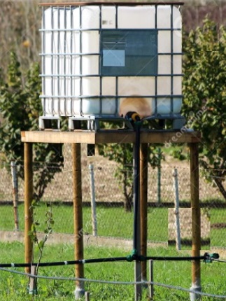Nemáte zásuvku na balkoně nebo elektřinu na chatě? Závlaha samospádem je právě pro vás. Základem je umístit nádrž vysoko jak jen možné, aby se vytvořil dostatečný tlak. IBC nádrž o objemu 1000L ve výšce 1m nad zemí má tlak 0,1 baru. Ideální umístění 1-2m. Pro takový tlak je vhodná rozvodová hadice o průměru 16-20mm s maximální délkou 30m. Rozvětvení mmůžeme použít ať už s instalovanými kapkovači v konstantních vzdálenostech nebo použijeme větvení kapkovou hadicí bez kapkovačů, a ty si doinstalujeme v potřebných vzdálenostech a průtocích. Jak již z podmínek vyplývá, značnou výhodu při řešení kapkové závlahy samospádem mají svažité pozemky.
