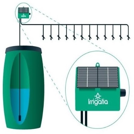 Pokud nemáte možnost samospádu díky vyvýšené nádrži a nemáte k dispozici ani elektřinu, pak je pro vás vhodná solární závlaha. Automatická solární závlaha SOL- C12 ideální na balkóny, zahrádky a políčka. Poslouží všude tam, kde není tlaková voda ani el. přípojka. Oproti závlahovým časovačům zavlažuje rostliny dle potřeby. Nestává se tedy, že je zalito buďto málo nebo moc. 200l barel zpravidla vydrží až 14 dnů. Čím více svítí sluníčko, tím více IRRIGATIA zalévá. V noci se systém vypíná.