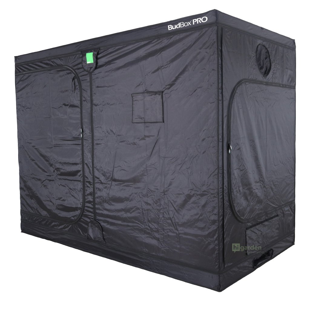 Budbox PRO XXL+ HL 150 je navržen pro osvětlení HPS a LED. Je vyroben ze 100% neprůsvitného, 4-vrstvého materiálu, který je netoxický a z kovové konstrukce s kvalitní povrchovou úpravou. BudBox stany jsou nyní vybaveny ocelovými push & click fit konektory, které poskytují kromě silnějších tvrzených ocelových sloupů větší sílu pro všechny vaše filtry, ventilátory a požadavky na osvětlení. Nový model PRO má vylepšení jako nové patentované neprůsvitné zipy, kovové spojky a spodní rám speciálně upravený pro odtok závlahy. Dále je stan bez spodních příčných trubek a má rovné dno. Jeho průchody na vzduchotechniku jsou nyní širší ( je možné použít sono potrubí).