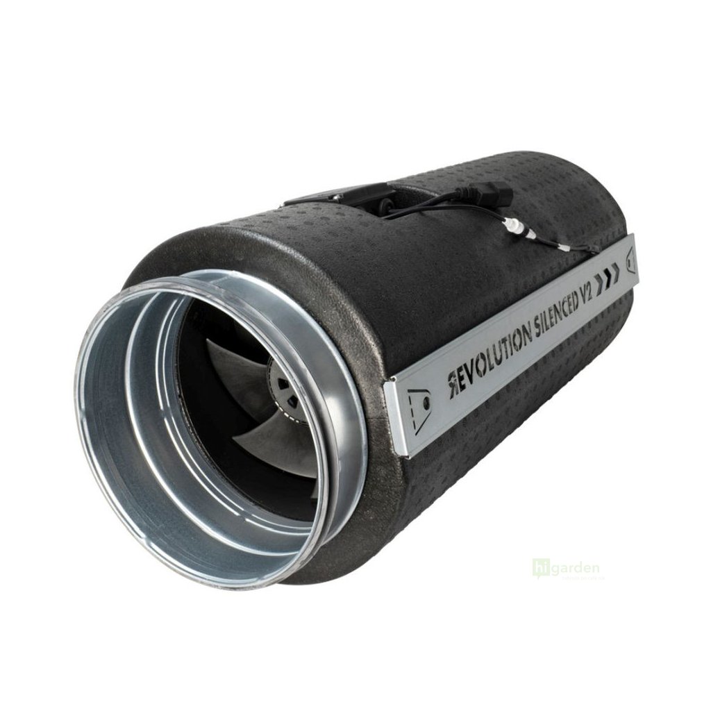 Revolution Silenced V2 je dokonalý ventilátor pohlcující zvuk s tichými EC motory a dvojitě vyváženými lopatkami. Výkonné, aerodynamicky optimalizované lopatky a vodicí lopatky vytvářejí rychlé vysokotlaké proudy vzduchu, které mohou být hlučné. Kryt ventilátoru Revolution Silenced V2 obsahuje pěnu snižující hluk, která neabsorbuje vlhkost ani prach a byla speciálně vyvinuta pro ventilační systémy.