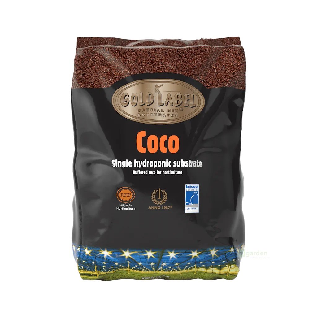 Gold Label Coco se vyrábí z vláken z lusku kokosového ořechu. Pro optimální kvalitu a stabiltu substrátu se pužívá pouze vyzrálá dřevitá hnědá skořápka. Vlákna ze skořápek jsou promytá, aby se odstranil přebytek EC, pufrovaná pro odstranění draslíku a pak se rozdrcena do jemných vláken. Veškeré zpracování probíhá způsobem šetrným k životnímu prostředí pod dohledem úřadu RHP. Gold Label Coco má certifikát RHP Horticulture, která zajišťuje kvalitu, stabilitu a jistotu úrody.