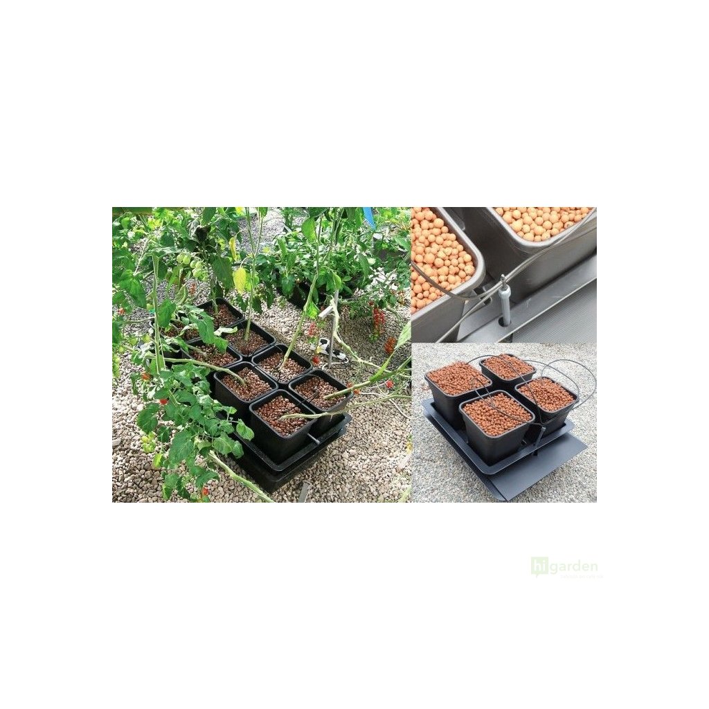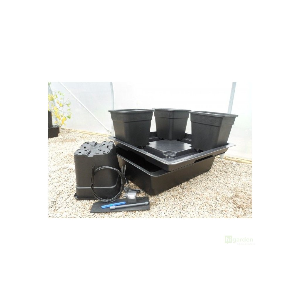 Recirkulační drip systém systém Wilma XL 4x25L, 90 x 90 x 20 cm umožňuje kvalitní pěstování jednoletých i víceletých rostlin ve sklenících nebo balkónech. Pohodlně se vejde i do pěstebních boxů s rozměry 1,5 x 1,5 m případně 1,2 x 1,2 m. Živení probíhá efektivně a hospodárně. Čerpadlo přenáší zálivku do horní části květináčů a zavlažuje substrát. Kořenový systém vstřebá potřebné živiny, nevstřebaná výživa steče do nádrže. Při dalším zalévání bude opět využita. Tento druh hydroponické závlahy garantuje díky časovači a 70litrové nádrži maximální komfort vašim rostlinám i ve chvílích, kdy se jim nemůžete z různých důvodů věnovat každý den.
