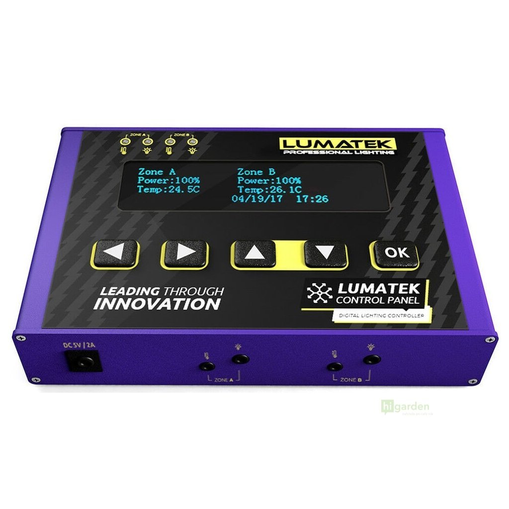 Ovládací panel Lumatek je digitální regulátor osvětlení, nabízí přehlednou kontrolu nad předřadníky a vaším osvětlením. Tento regulátor inteligentně monitoruje teplotu v místnosti, časování světla, automatizaci, bezpečnostní kontrolu a stmívání.