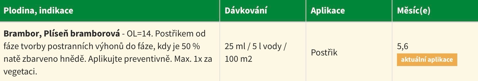 Systémový fungicidní přípravek proti plísni bramborové (Phytophthora infestans) na bramborách.