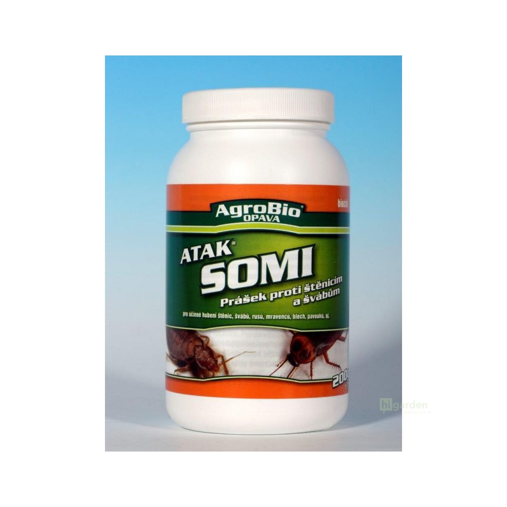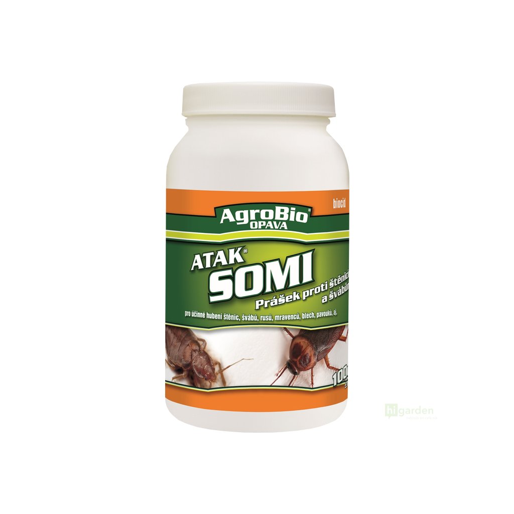 AgroBio ATAK - Somi proti štěnicím a švábům hubí štěnice, šváby a další lezoucí hmyz v interiéru. Na škůdce působí dotykově a aplikuje se posypem na pevné plochy (podlahy a jiná místa). Vhodný na hubení škůdců v následujících prostorách: domy, byty, hotely, restaurace, jídelny, dopravní prostředky, průmyslové sklady, chovné prostory a stáje.