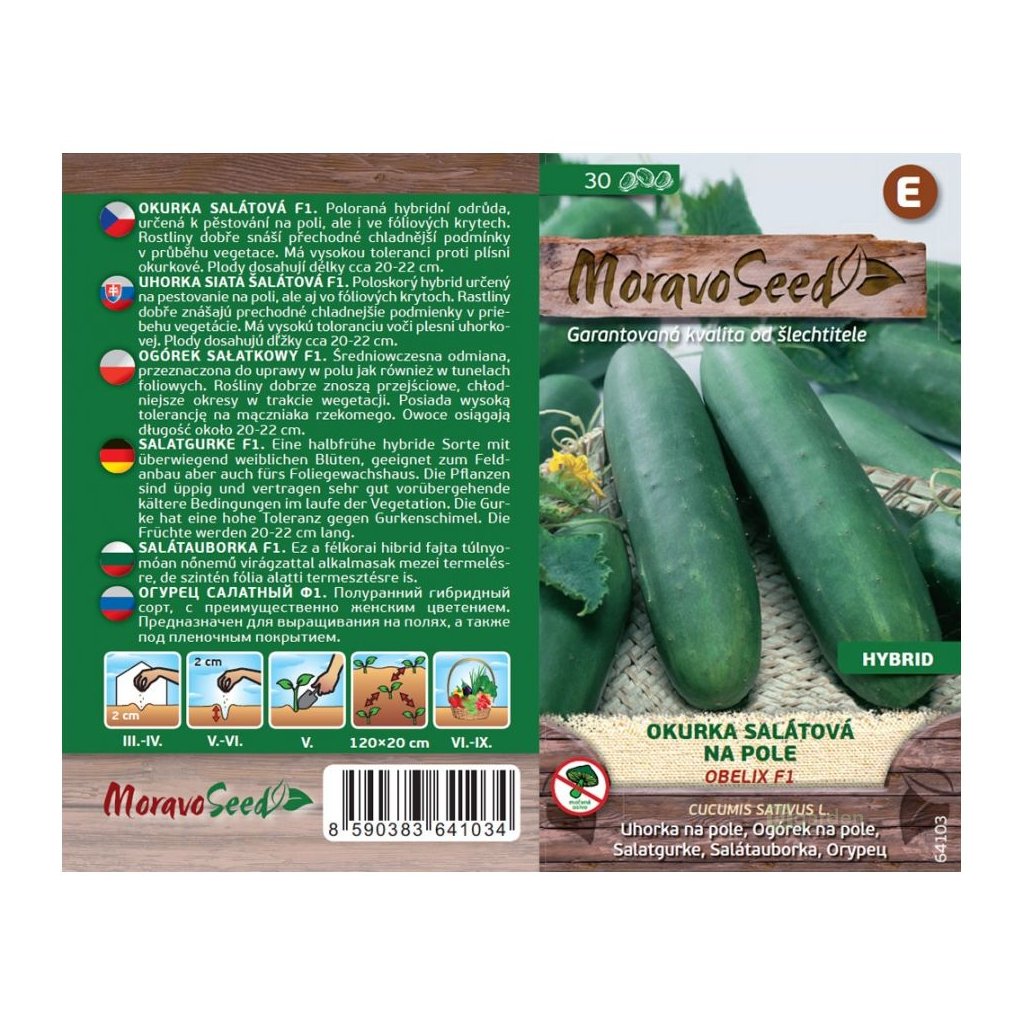 Balení semen salátové okurky Obelix F1 od Moravo Seed obsahuje 30 semínek.