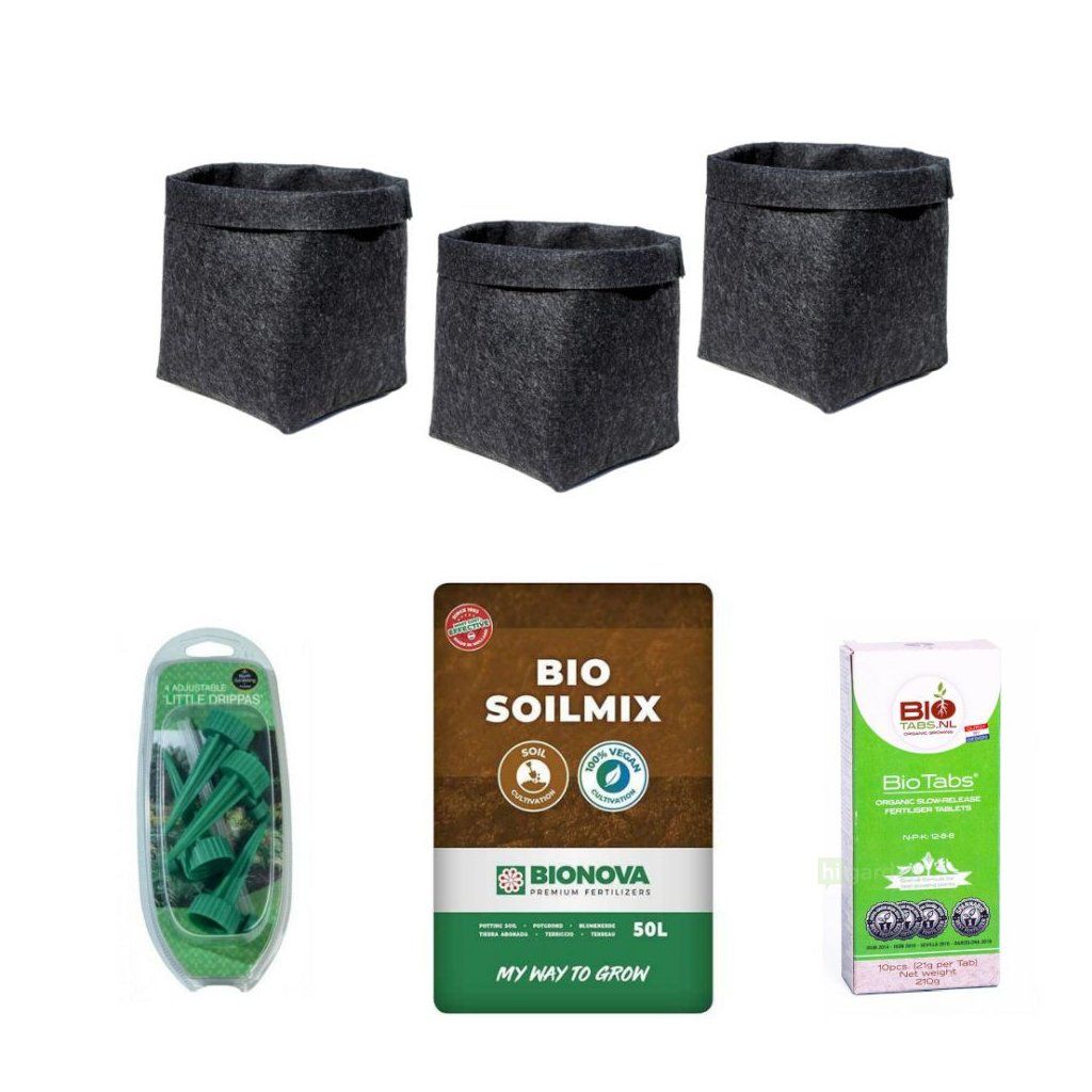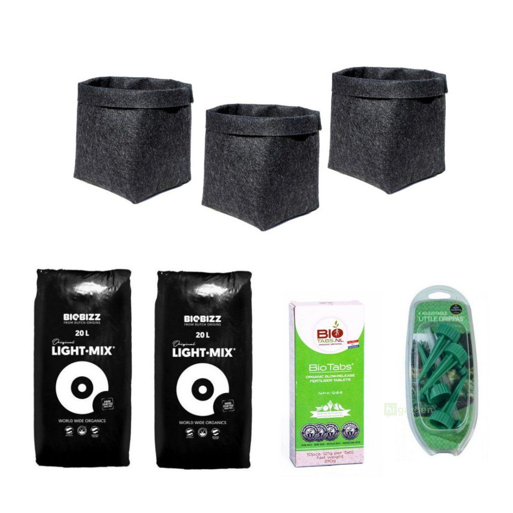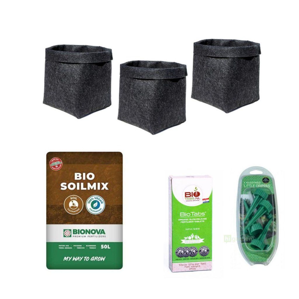 Pečlivě vybranou kombinaci prémiových organických produktů, které společně tvoří soběstačný ekosystém pro pěstování tří jednoletých rostlin.