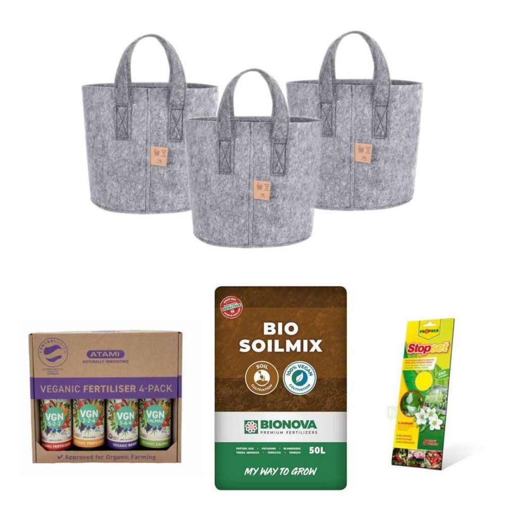 Tato sada je perfektní volbou pro začínající pěstitele, kteří ocení její kompletnost a jednoduchost. Zároveň ji doporučujeme i zkušeným zahradníkům, kteří hledají spolehlivou a vysoce kvalitní veganskou alternativu pro pěstování venku. Skvěle se hodí pro pěstování rajčat, chilli papriček, bylinek, jahod a dalších jednoletých rostlin.