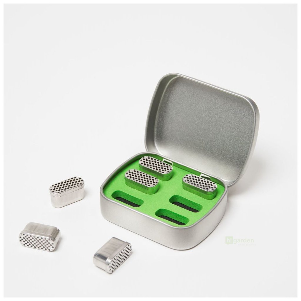 Kit BudKups Bud Case Bundle pro vaporizéry PAX obsahuje: 6x BudKups kapsle s krabičkou a 2x nástroj pro snadnou manipulaci.