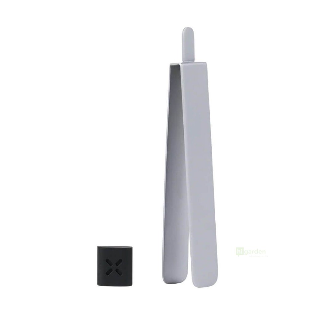Nerezové kleštičky se silikonovým tampem pro čisté přemisťování a upěchování bylin. Pod tampem je integrovaný hrot.
