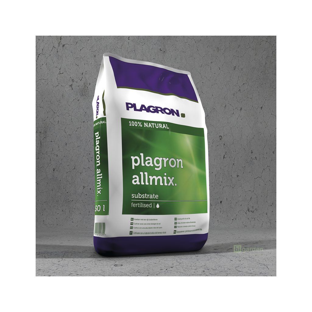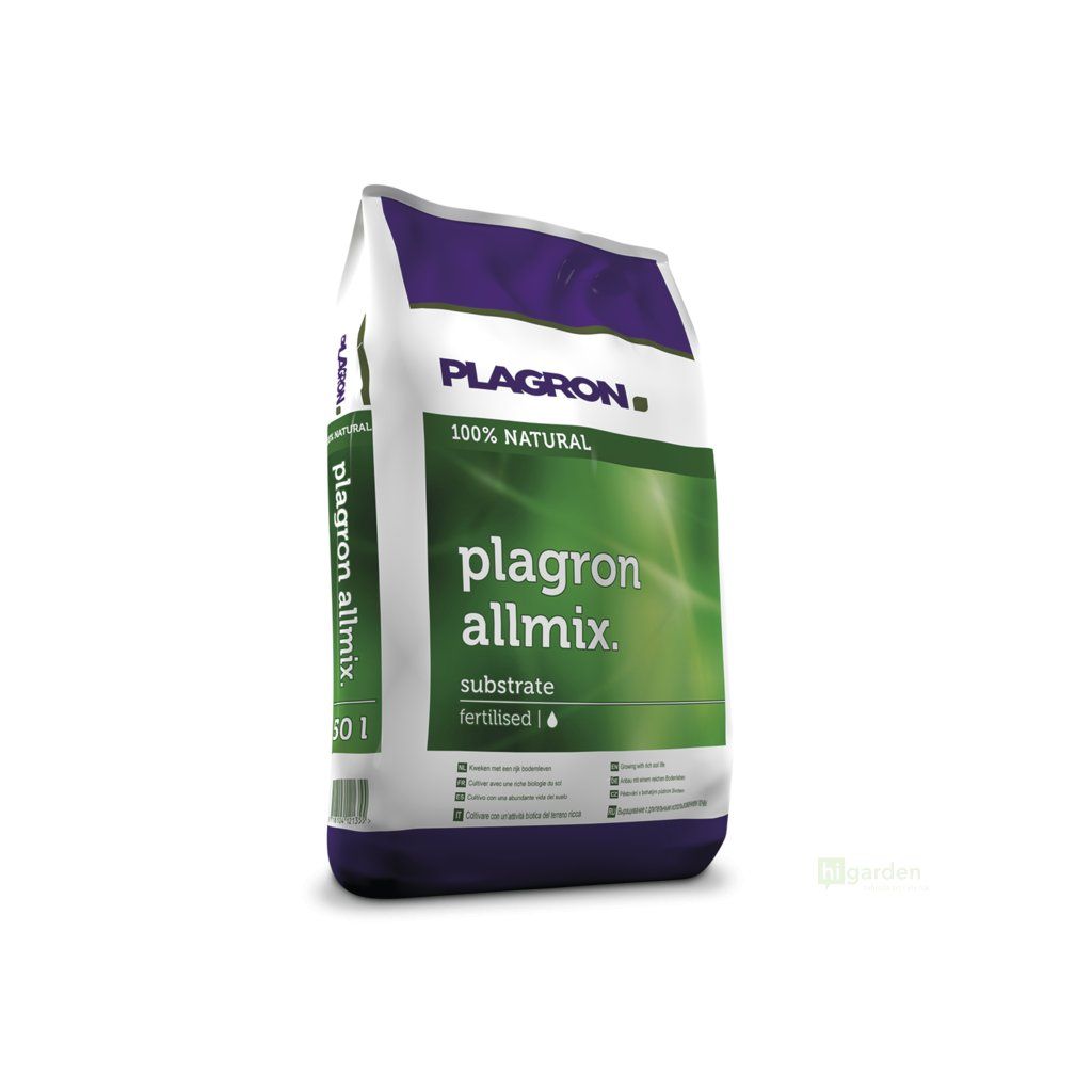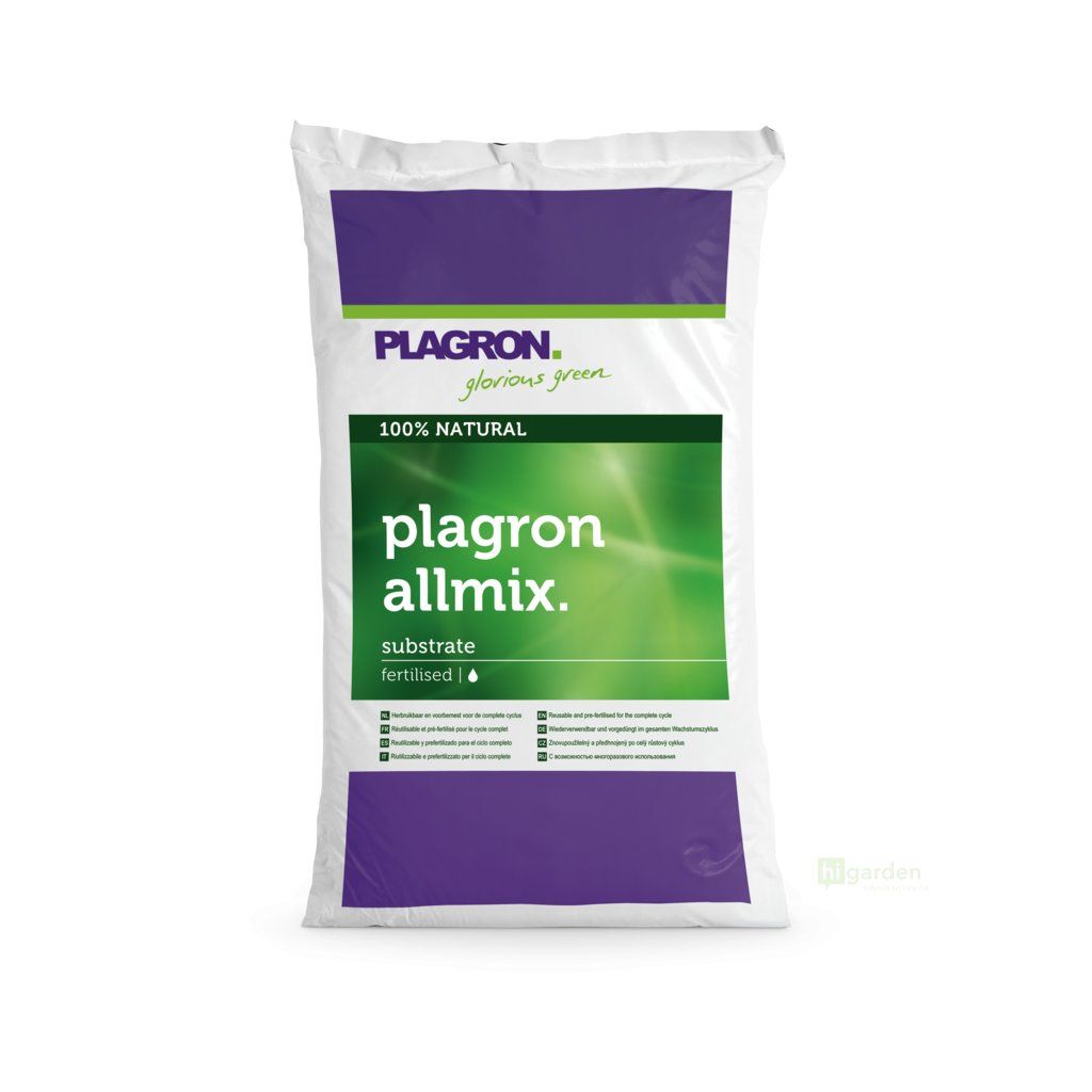 Plagron Allmix je vysoce kvalitní směs, která obsahuje ty nejlepší druhy rašelin. Tento předhnojený substrát je složen z bílé rašeliny, černé rašeliny, vláknité rašeliny, perlitu, verikompostu a minerálních NPK hnojiv. Přítomný perlit zkvalitňuje strukturu, zvyšuje provzdušněnost, lehkost a okysličení. Vermikompost zaručuje vyšší úrodnost, zdravý růst rostlin i lepší schopnost zadržování vody.