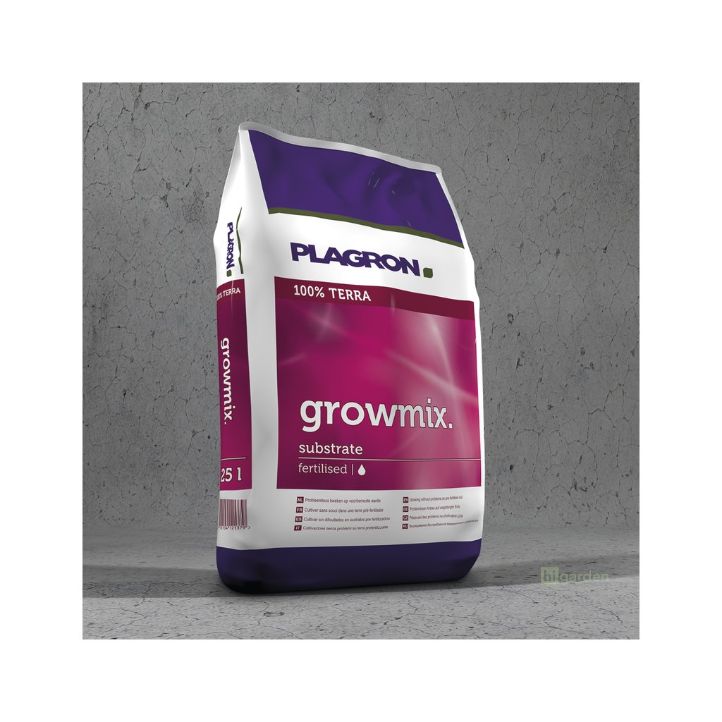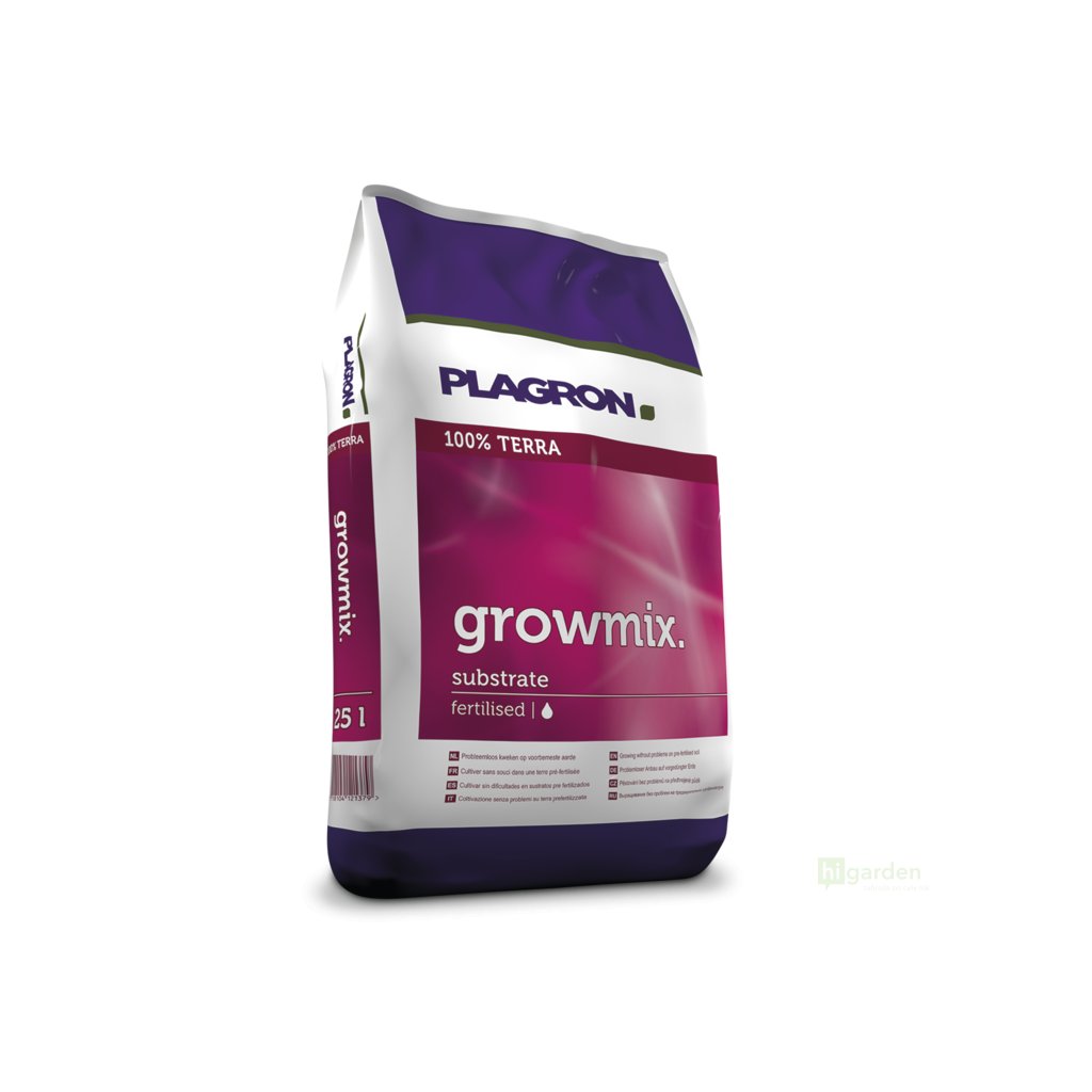 Plagron Growmix je vysoce kvalitní směs, která obsahuje ty nejlepší druhy rašelin. Tento předhnojený substrát je složen z bílé rašeliny, černé rašeliny, vláknité rašeliny, biohumusu, perlitu, vermikompostu a 1,8 kg/m3 minerálních NPK hnojiv (12–14–24). Přítomný perlit zkvalitňuje strukturu, zvyšuje provzdušněnost, lehkost a okysličení. Vermikompost zaručuje vyšší úrodnost, zdravý růst rostlin i lepší schopnost zadržování vody.