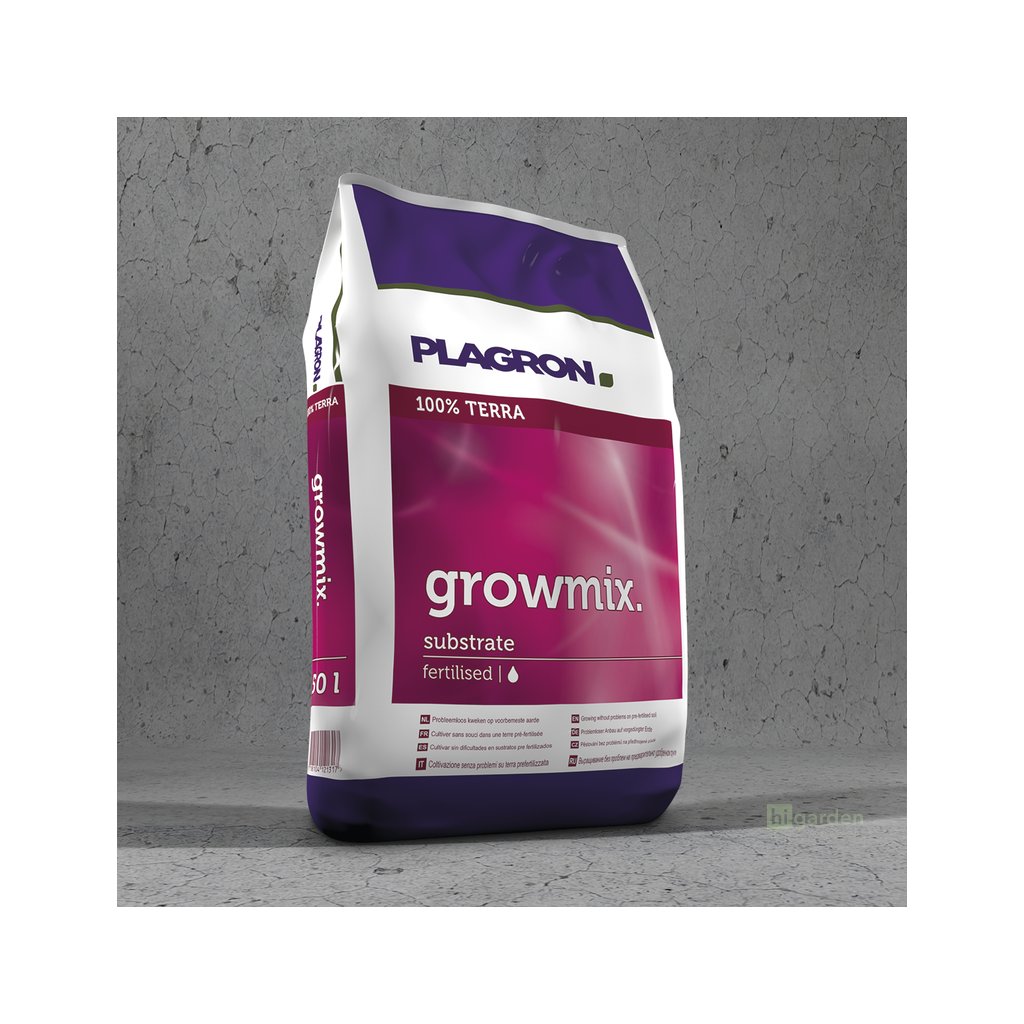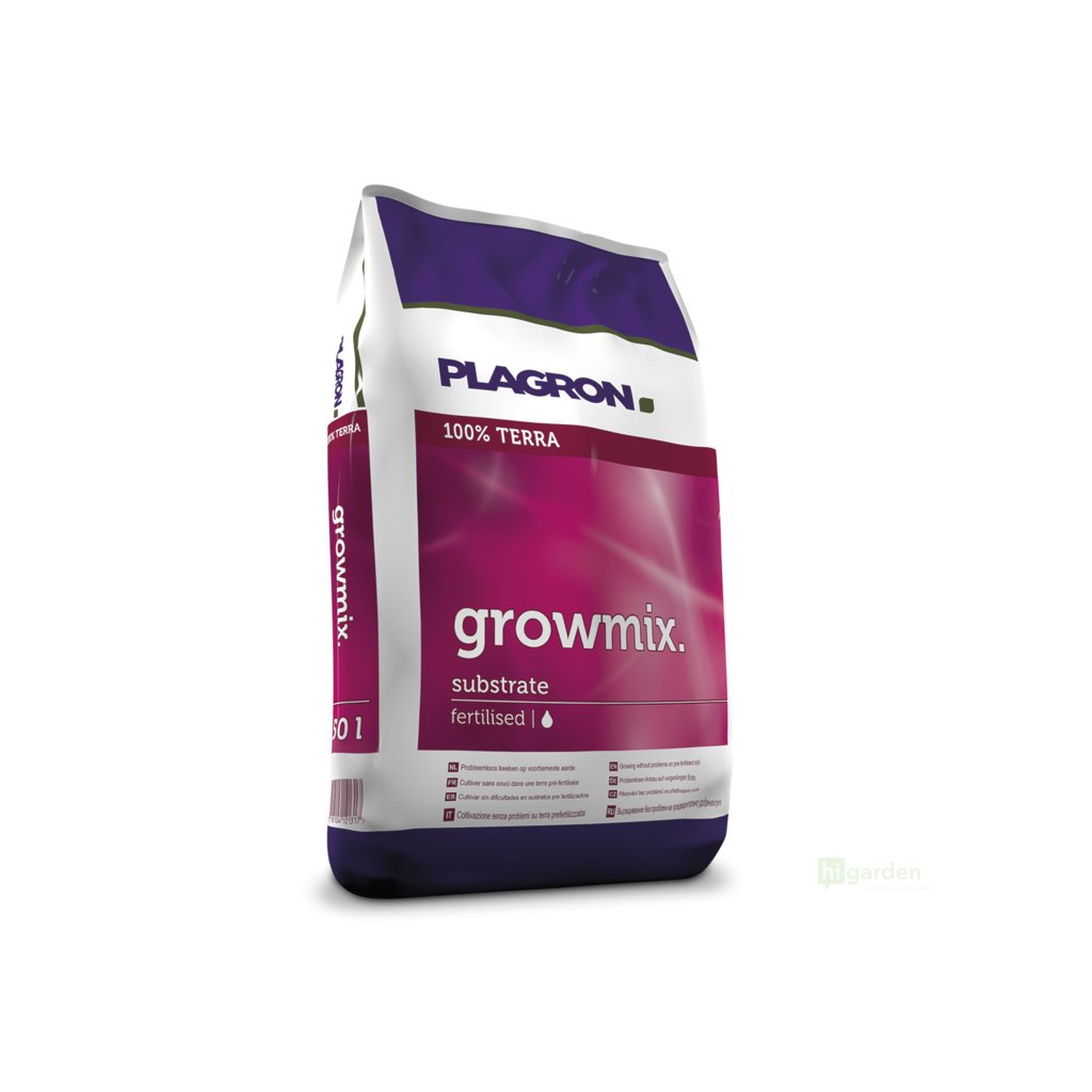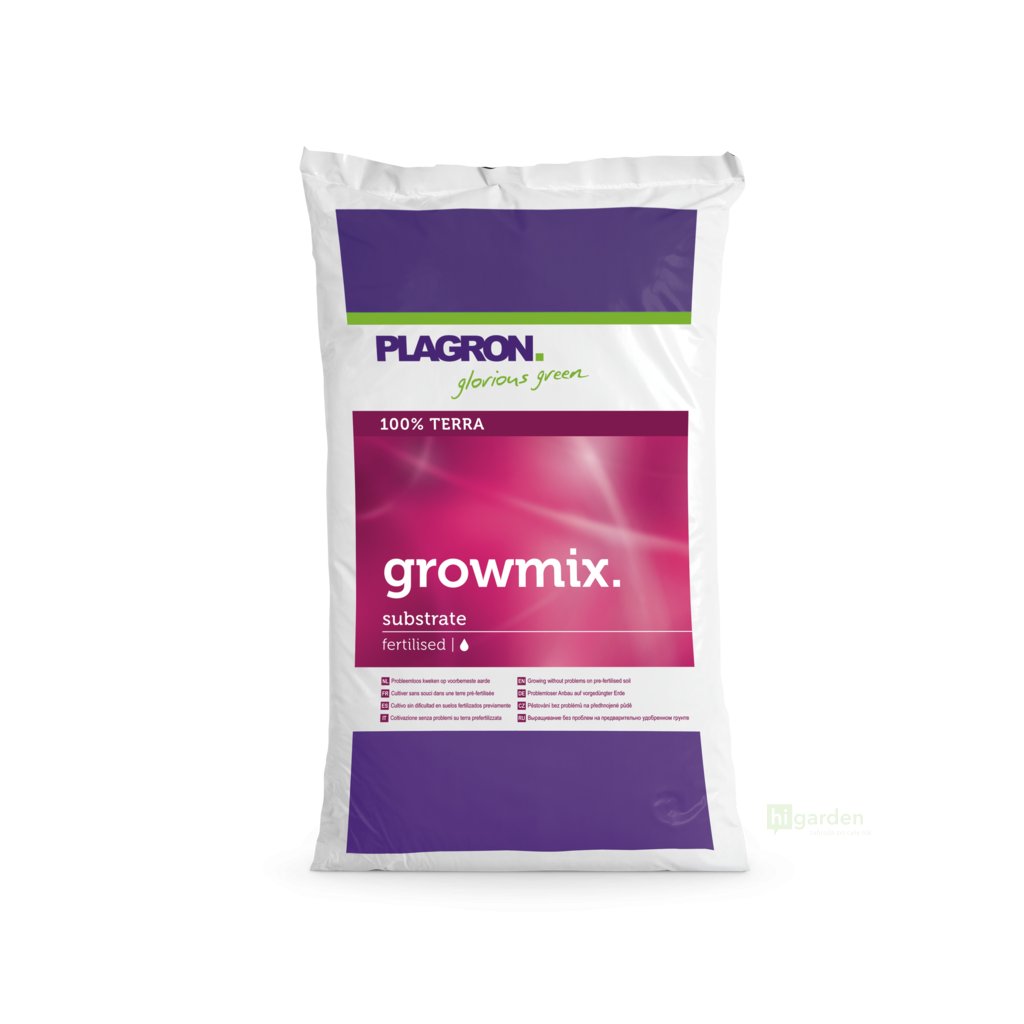 Plagron Growmix je vysoce kvalitní směs, která obsahuje ty nejlepší druhy rašelin. Tento předhnojený substrát je složen z bílé rašeliny, černé rašeliny, vláknité rašeliny, biohumusu, perlitu, vermikompostu a 1,8 kg/m3 minerálních NPK hnojiv (12–14–24). Přítomný perlit zkvalitňuje strukturu, zvyšuje provzdušněnost, lehkost a okysličení. Vermikompost zaručuje vyšší úrodnost, zdravý růst rostlin i lepší schopnost zadržování vody.