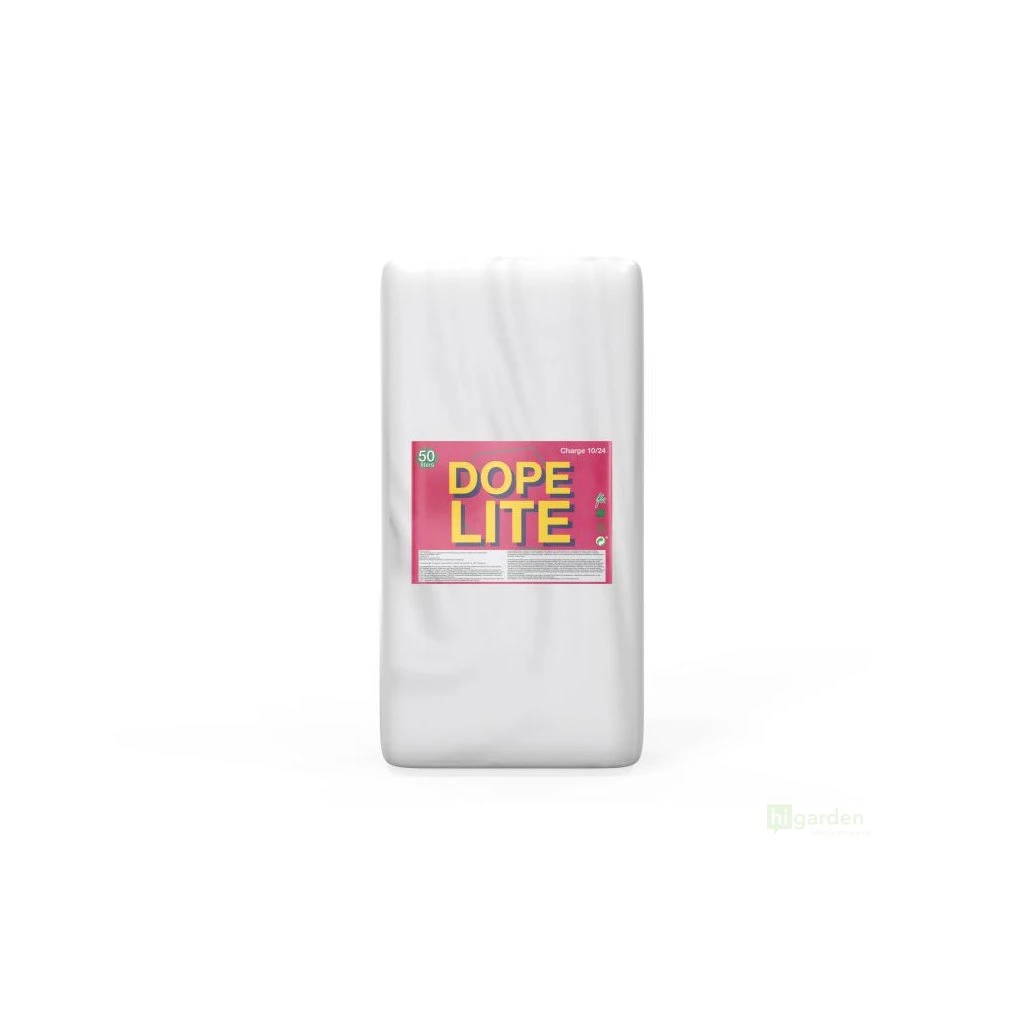 Na rozdíl od DOPE SOIL, který je obohacen o 10 % FLO, je DOPE LITE méně předhnojená směs substrátů. Díky FLO spojuje DOPE LITE vlastnosti kompletní produktové řady v jednom substrátu: základní hnojení s makro a mikroživinami, přírodní stimulátory kořenů, růstu a kvetení, huminové a fulvokyseliny, enzymy, křemičitany, aminokyseliny, CalMag, mykorhizu, Trichodermu a bakterie.