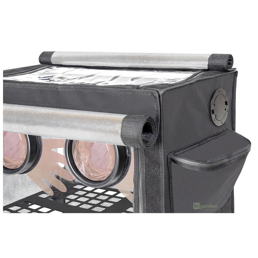 - Maximální ochrana proti kontaminaci: Čtyři vzduchotěsné rukavice, čtyři pasivní vzduchová okna s H14 filtry a odolné těsnící zipy vytvářejí bezpečné pracovní prostředí.