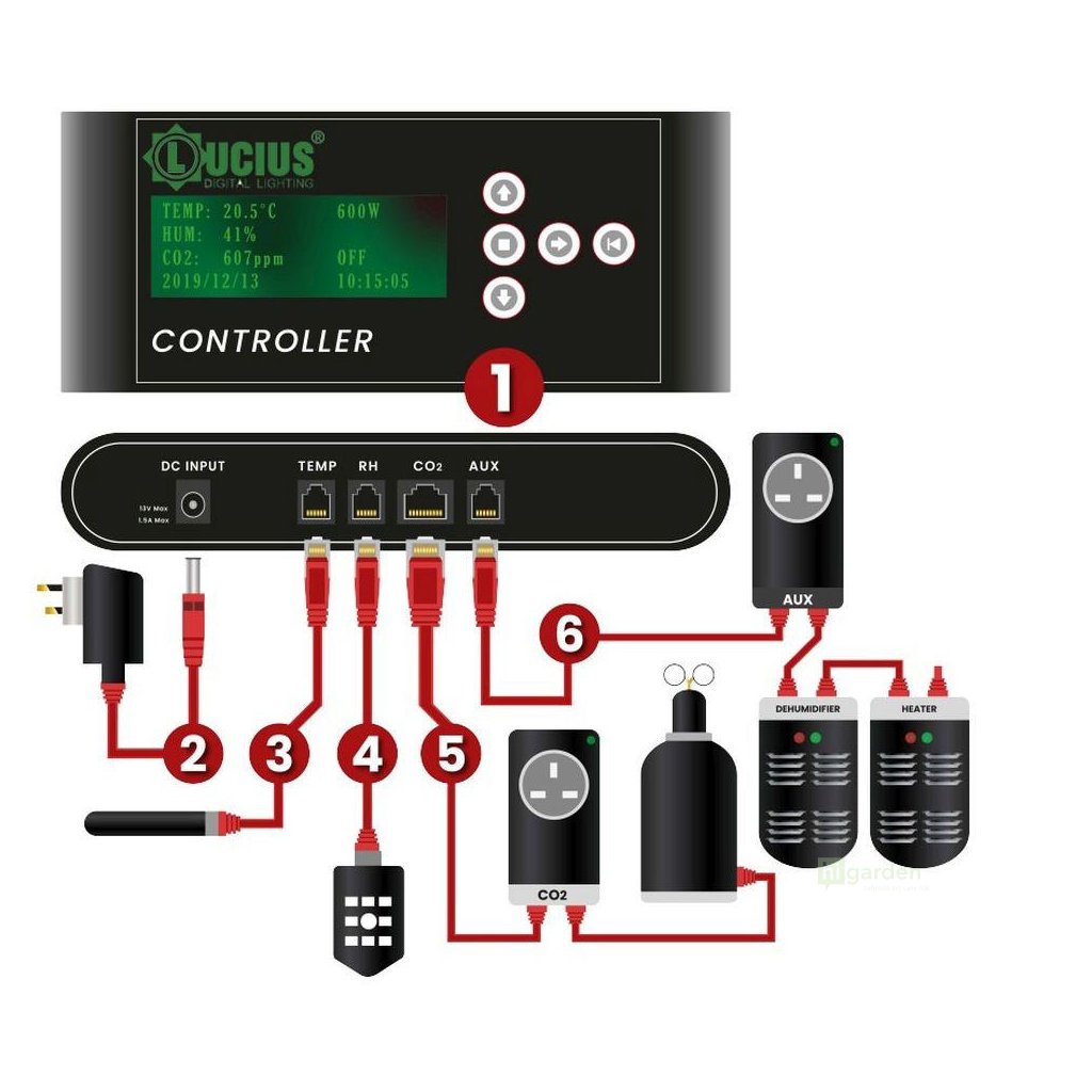 - na controller lze připojit a řídit další zařízení (generátor CO2, topení, odvlhčovač)