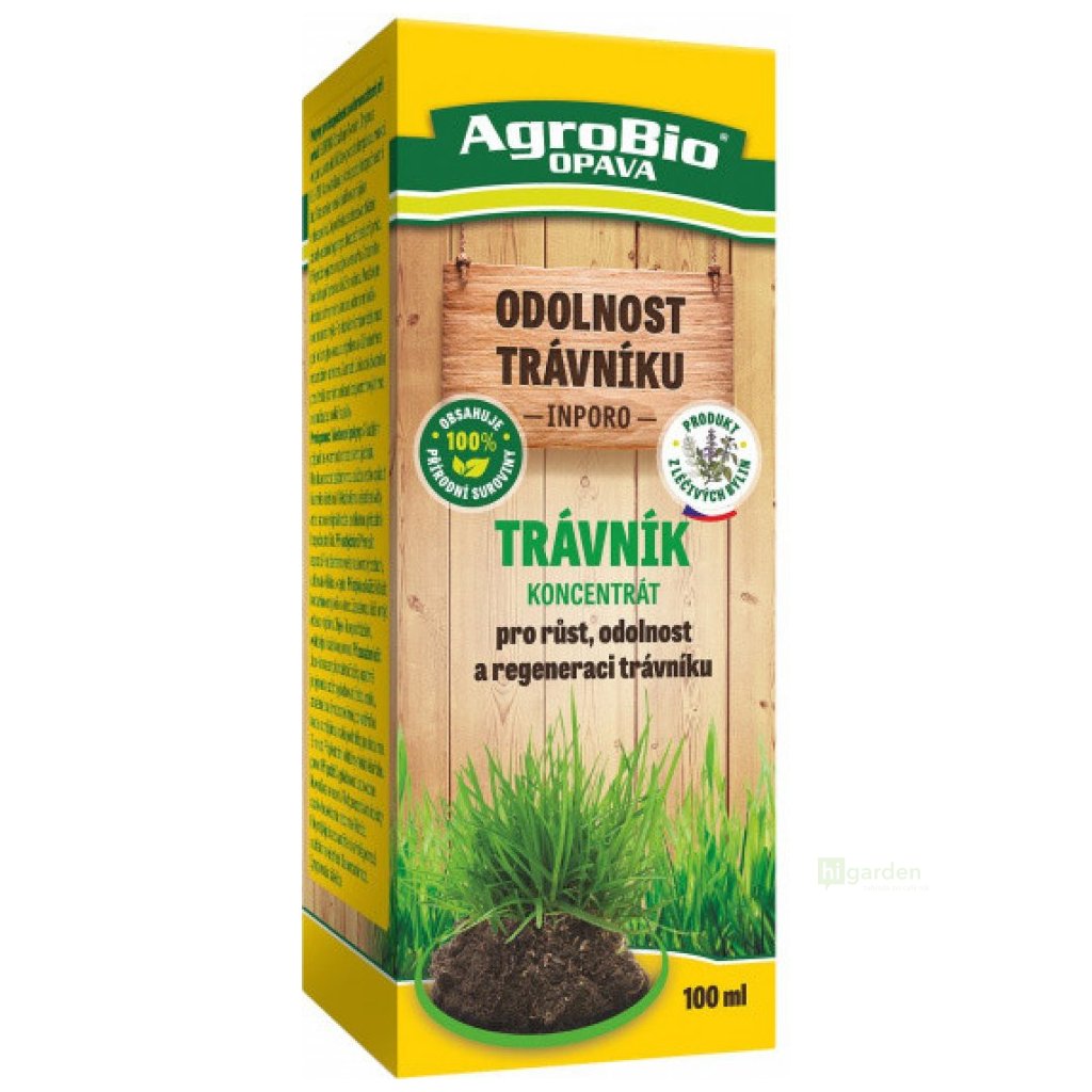 AgroBio INPORO Trávník koncentrát je přírodní přípravek z bylin a rašeliny pro odolnost trávníku před výskytem nebo v době výskytu houbových chorob (plíseň sněžná, kornatka travní, rzi).