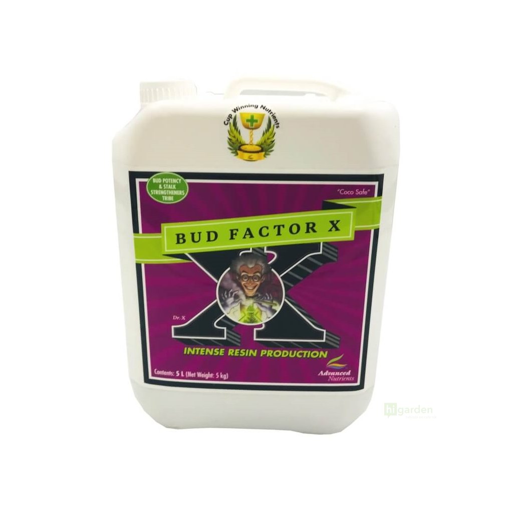 Bud Factor X je nový tekutý BOOSTER plodů, který obsahuje výkonné sloučeniny, které garantují zvýšení úrody a tvorbu esenciálních olejů stimulujících obranný mechanismus rostliny. Speciální sloučeniny Bud Factoru X jsou derivovány z čistých zdrojů, které přidají sílu a účinky Vaší úrodě. Bud Factor X je jediný druh "BOOSTERU", který obsahuje nejvyšší procento patentované látky stimulující imunitu.