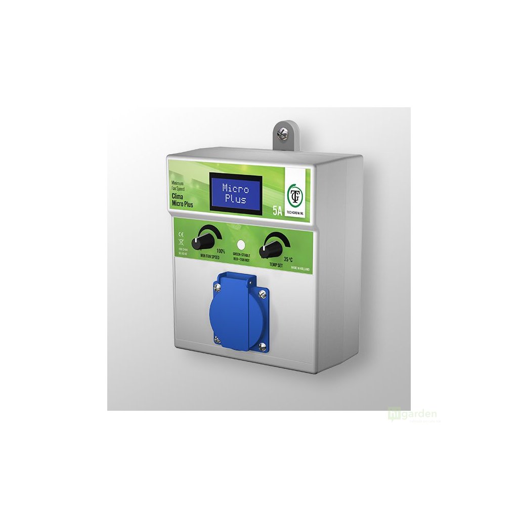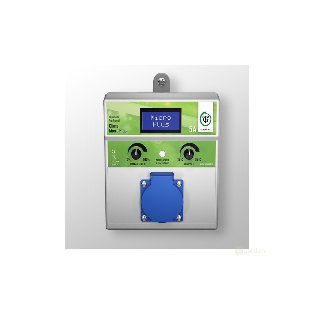 TechGrow Clima Micro Plus 5A (minimální rychlost) je regulátor se kterým ovládáte minimální rychlost ventilátoru, abyste dosáhli nebo udrželi požadovanou úroveň teploty ve Vaší místnosti. Regulátor je snadno ovladatelný pouze dvěma otočnými knoflíky pro nastavení minimální rychlosti (0-100%) a požadované teploty v místnosti (15°C-35°C). Regulátor má také možnost nastavit hysterezi teploty od 1°C do 5°C.