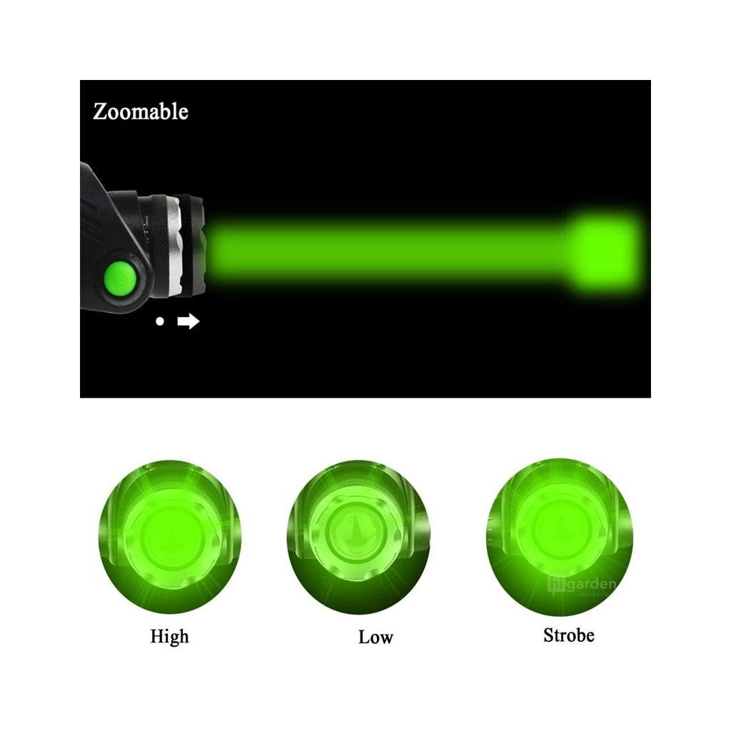 Praktická handsfree čelovka SunPro Green LED Headlamp. Čelovka se zeleným LED světlem, které neruší rostliny při nočních kontrolách. Čelovka je dodávána včetně 2ks 18650 výkonných baterií. Tyto speciální baterie se dají opakovaně nabíjet pomocí mini USB kabelu a vydrží i několik let.